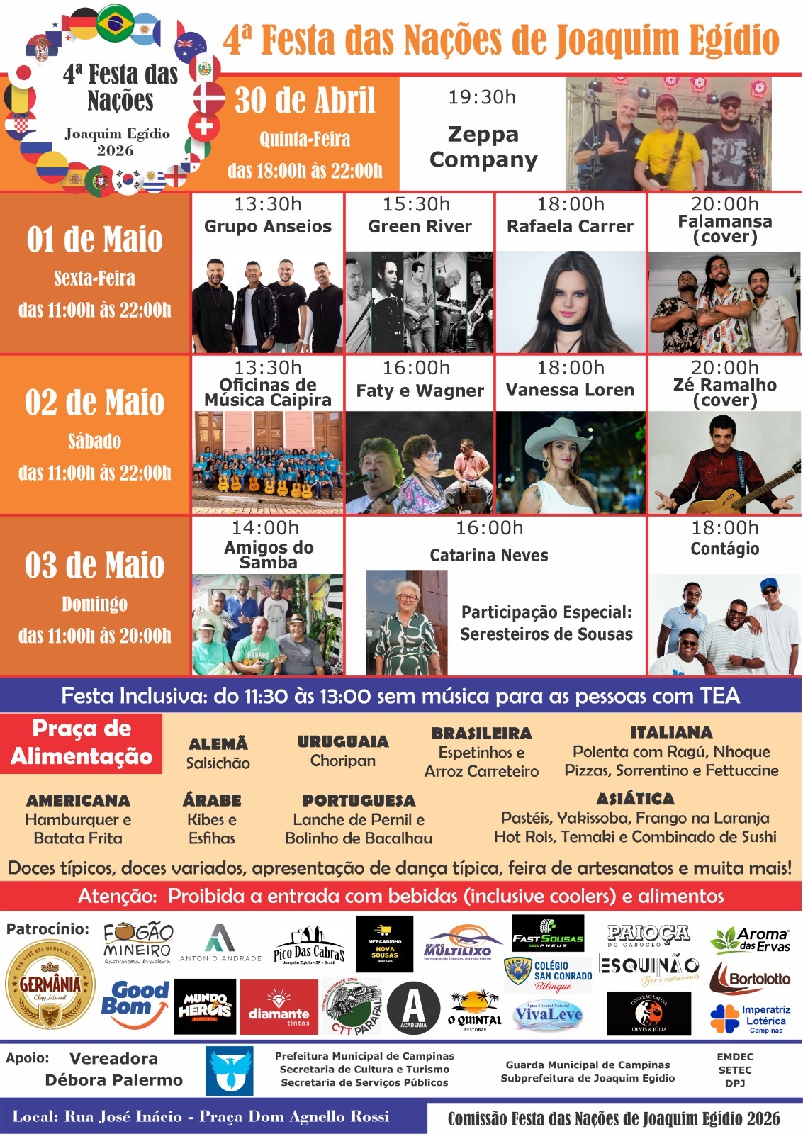 4ª Festa das Nações de Joaquim Egídio em Campinas divulga atrações musicais